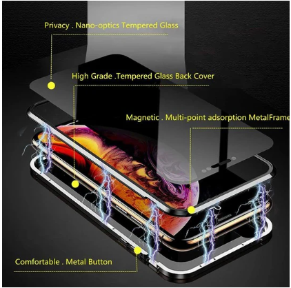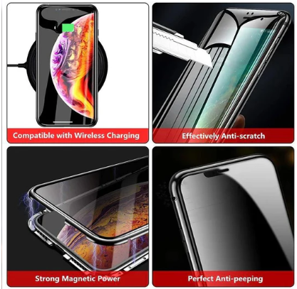 The Clear anti peek Tempered Glass Case provides 360 degree protection for your screen and is held together by Aluminium Metal.